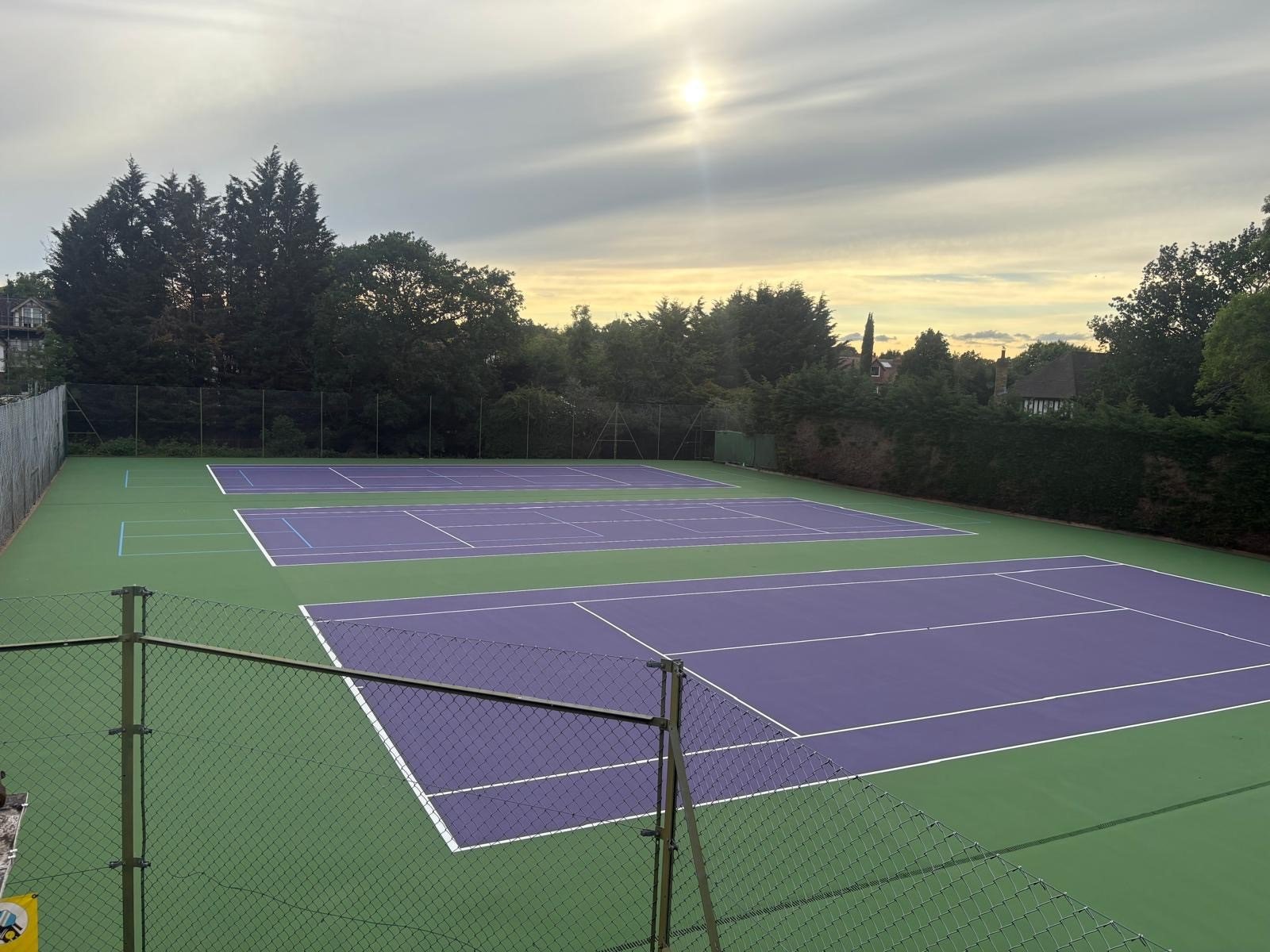 Bromley LTC are proud to announce the opening of their newly resurfaced block of four acrylic tennis courts installed by 1st-Surface Ltd. Their striking colours and blue pickleball lines make it a unique and very attractive installation. All the membership are delighted with their new courts and are impressed by the quality of the surface and the installation.